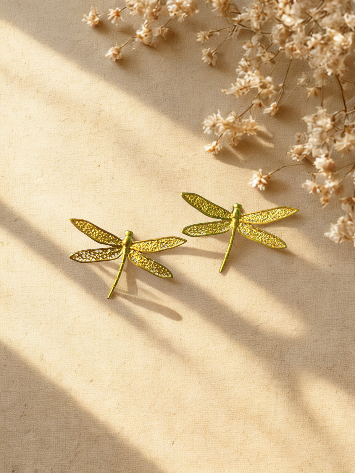Delicate and enchanting, our dragonfly earrings capture the beauty of nature in a timeless design. Crafted in a luxurious gold finish, they bring a hint of whimsy and elegance to your everyday style and special occasions alike.