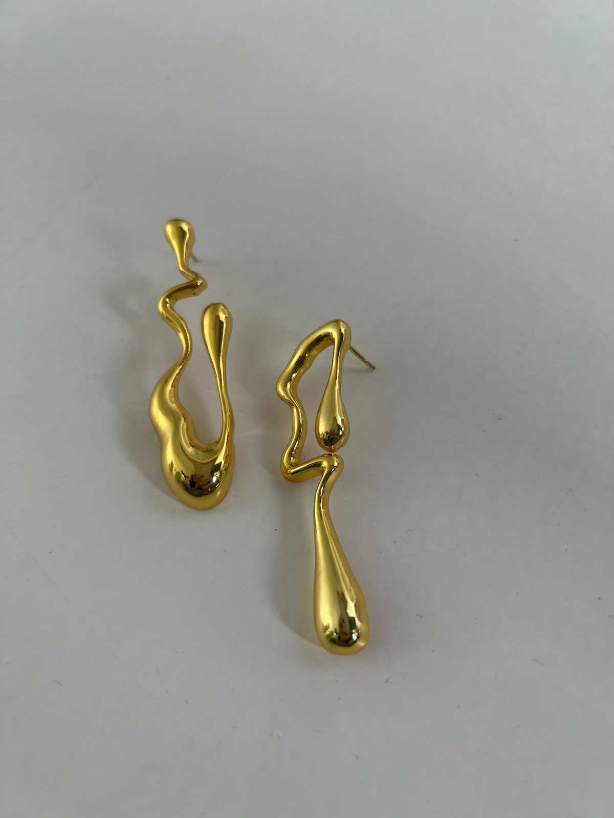 Bold and contemporary, our drip gold earrings feature a fluid, molten-inspired design with an artistic mismatched silhouette that catches the light beautifully. Perfect for elevating both minimal and statement looks.