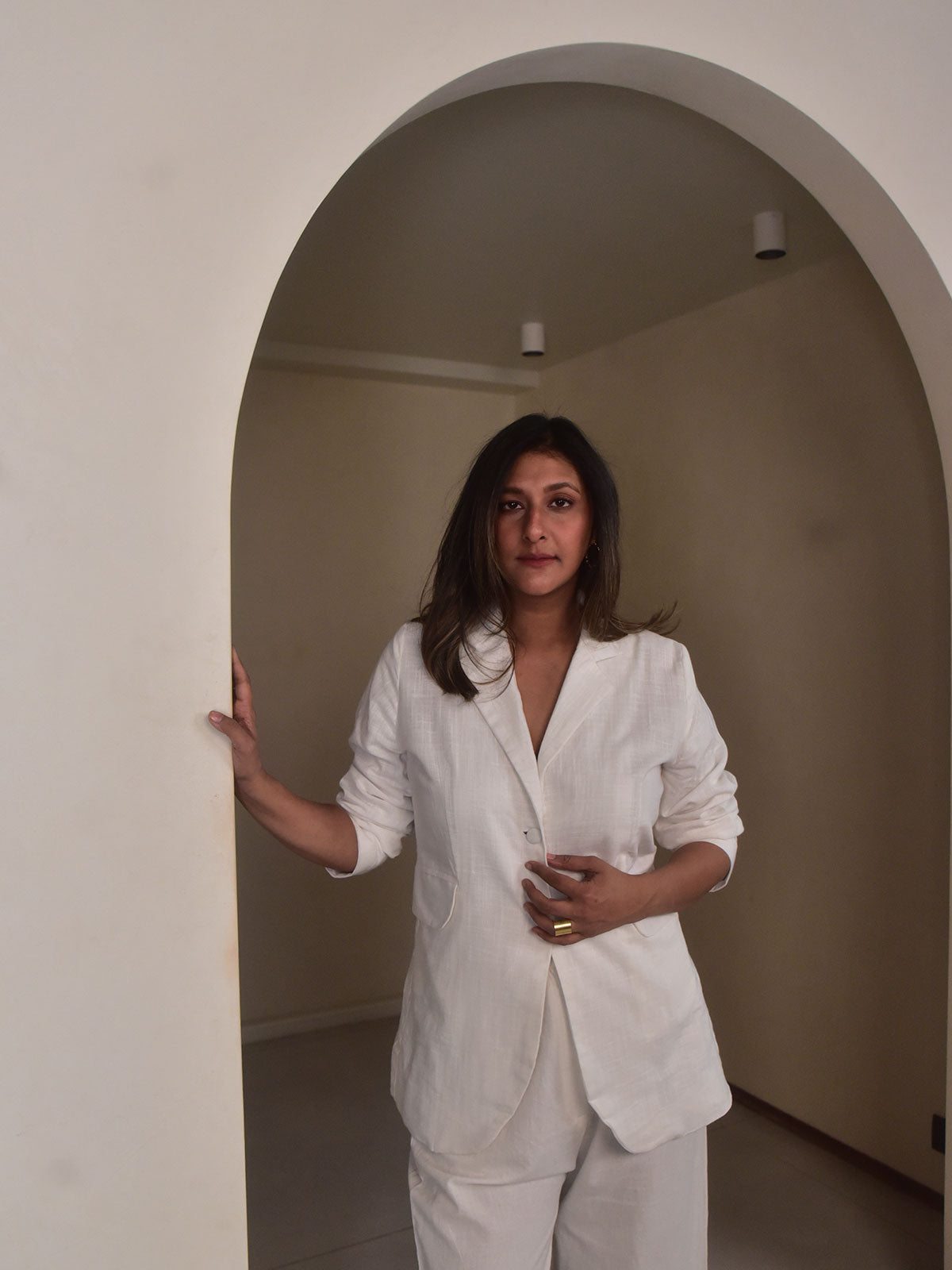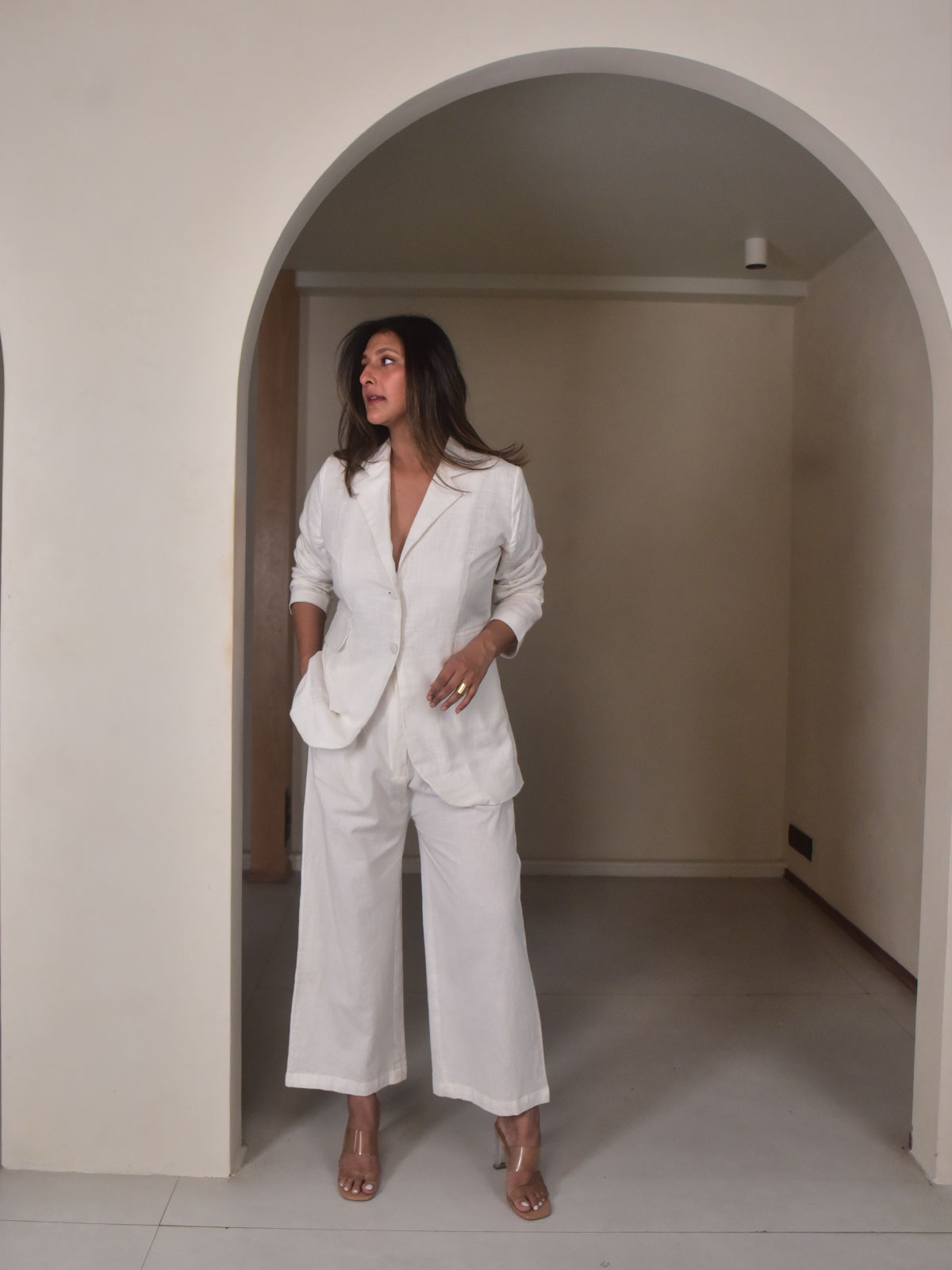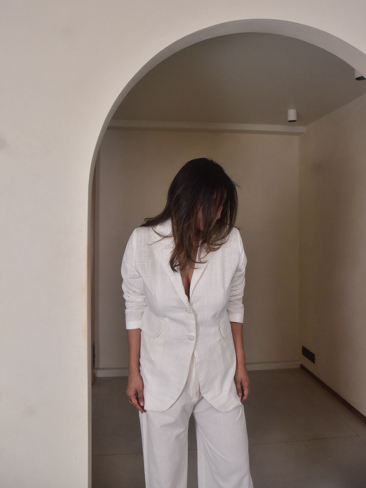 Cut in our exclusive white slub cotton, this statement blazer is designed to bring structure and sophistication to everyday dressing. Featuring a sharp lapel collar and classic flap pockets, the silhouette balances tailoring with a relaxed ease. The textured slub fabric adds subtle character while maintaining a crisp, polished look. Pair it with linen pants for work settings, smart casual outings, or evening gatherings.