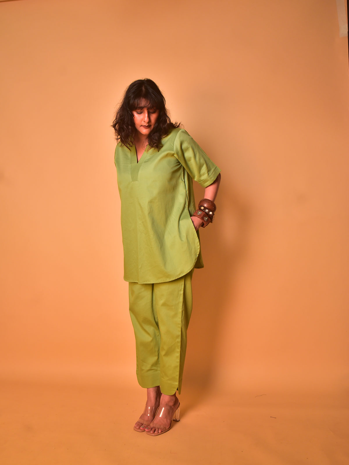 Fabric: 100% Cotton, Broken Twill Weave Closure: No closure. Length: 31" Lining: This product is unlined Model: Shweta is 5'6 and she is wearing size L. The fabric is sourced in Bangalore, and stitched by our skilled karigars in Thane.