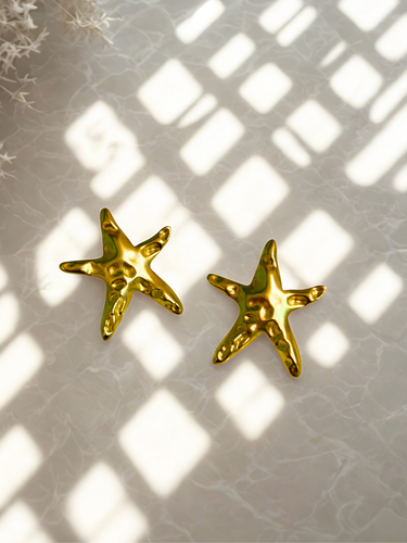 Delicate and playful, our starfish earrings are inspired by the beauty of the ocean. Crafted in a luxurious gold finish, they bring a touch of whimsy and charm to both everyday outfits and festive looks.