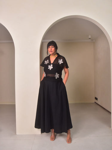 Fabric: Black Dyed Cotton Net (top), Black Dyed Mul Cotton (slip), Black Dyed Cotton Linen (skirt)