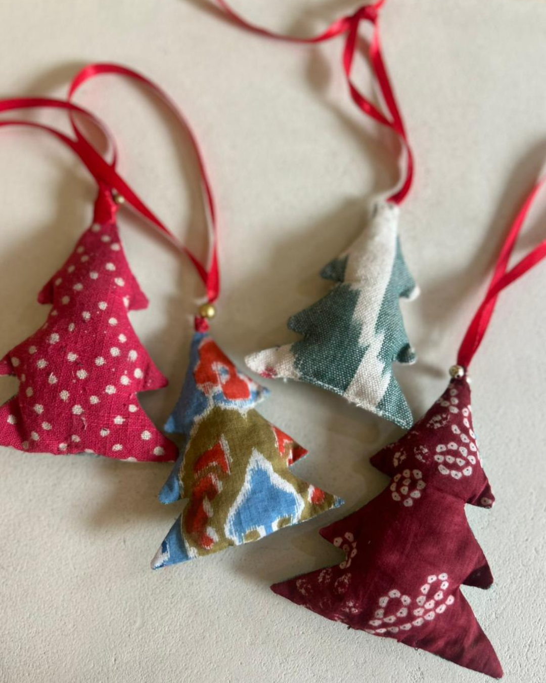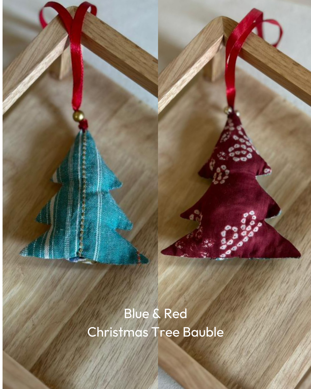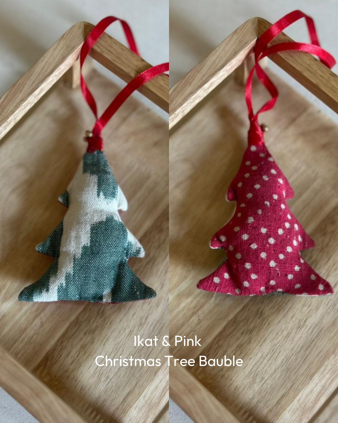 Inspired by the classic Christmas tree, this bauble is made using printed cotton fabrics and filled with scrap fabric.