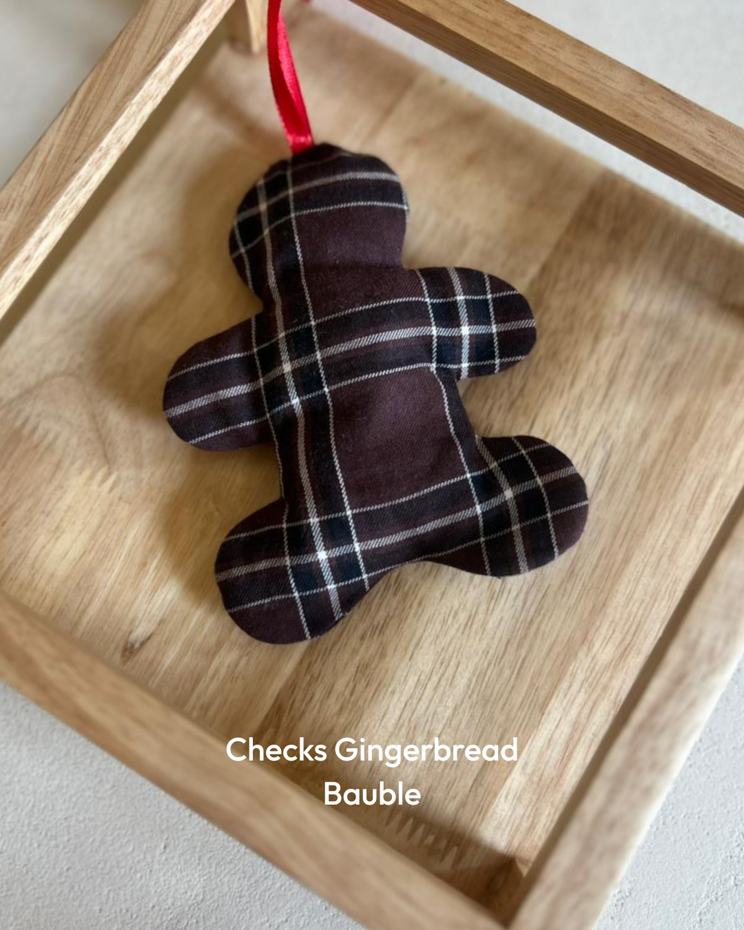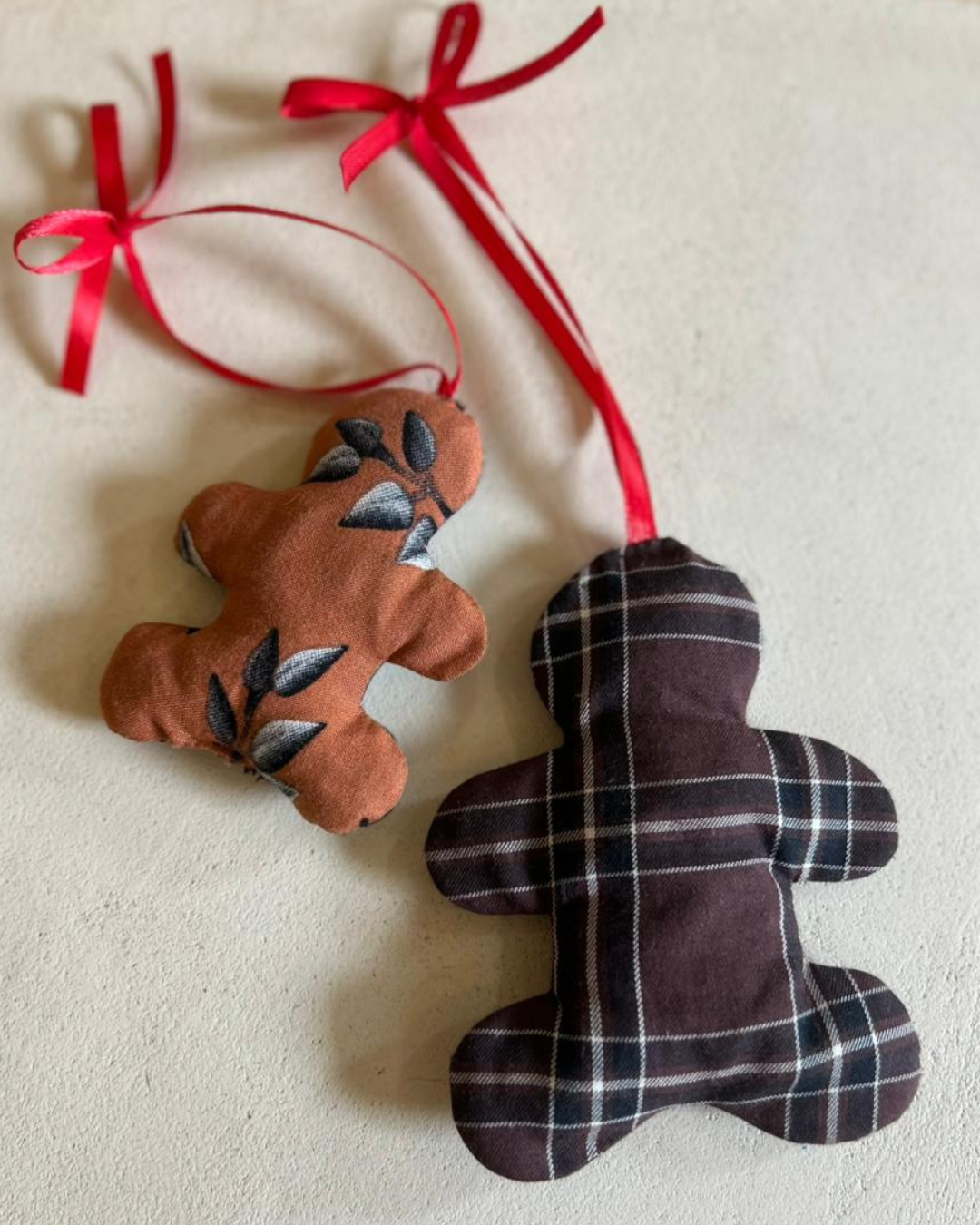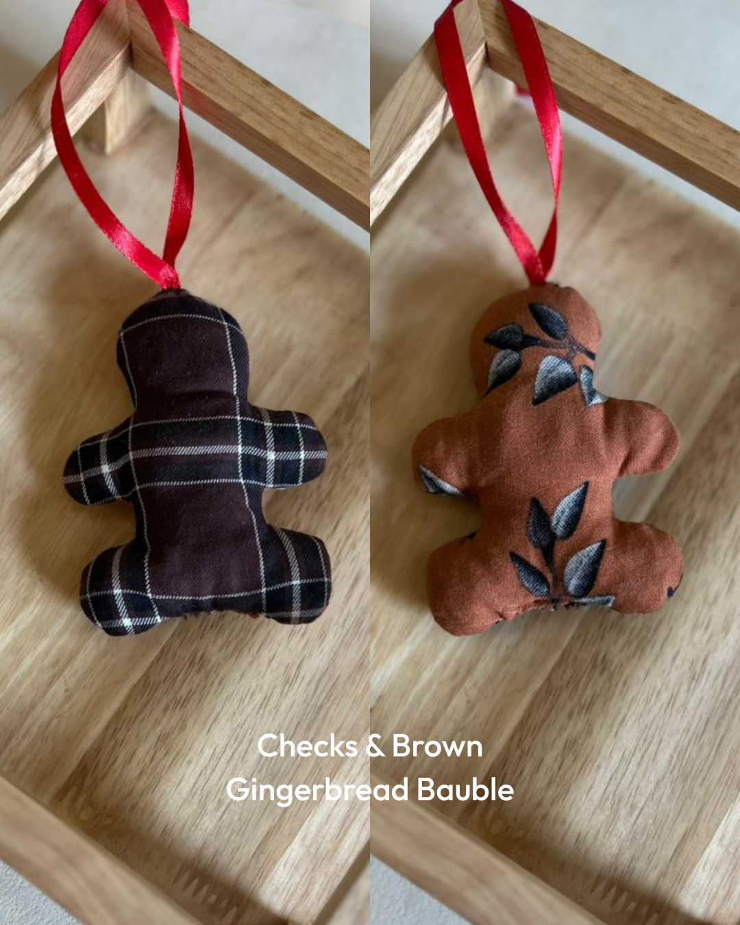 This charming ginger man shaped bauble is made from printed cotton fabrics and filled with scrap fabric for a plush look.