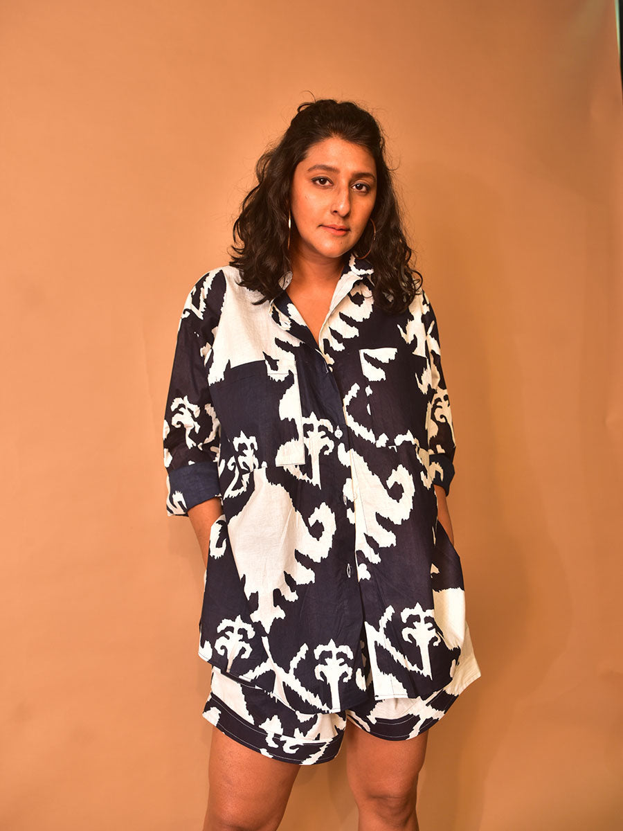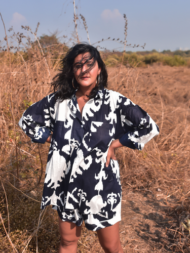 Retire your denims for the summer, these printed shorts are going to steal the show. Cut in black and white hand-block printed cotton, the shorts come with roomy pockets on both sides and an elasticated waistband with a drawstring tie-up for maximum comfort. Pair with our Nala shirt for a lazy weekend-in look.