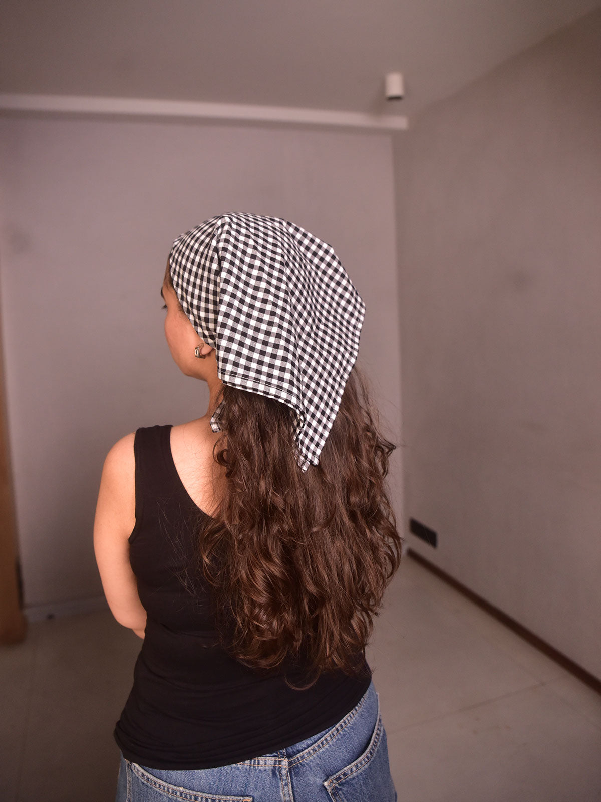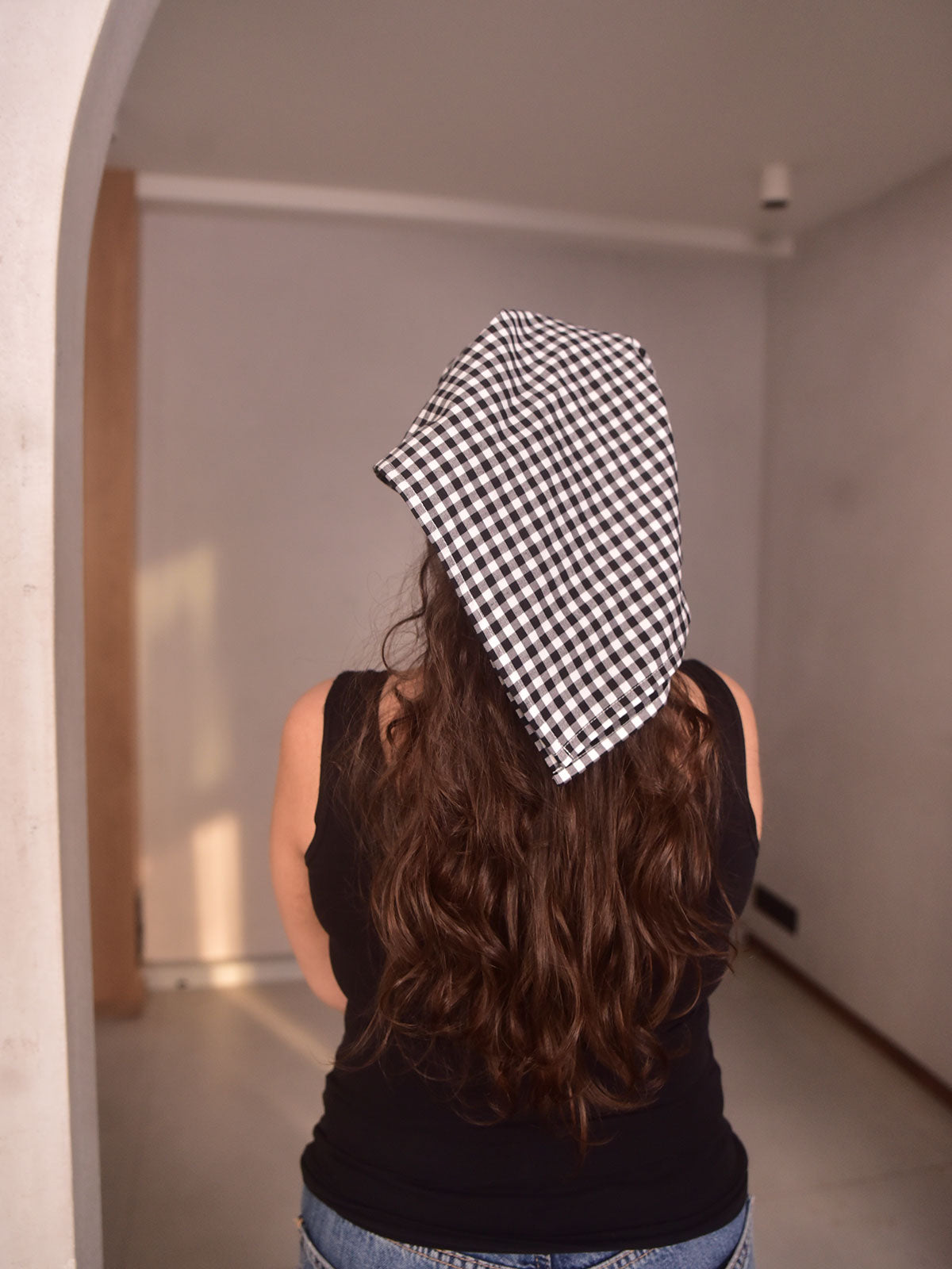 This black-and-white checkered cotton scarf adds a clean, modern edge to everyday outfits. Style it with denim jackets or crisp button-downs for a polished finish. Great for workdays, casual brunches, or city outings.
