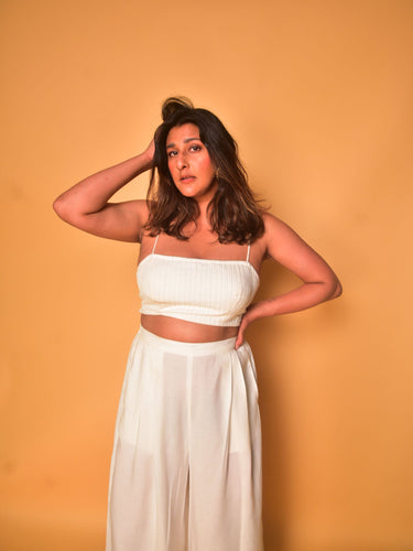A chic nefer bralette to pair with absolutely any outfit. With thin spaghetti straps and an elasticated smocking back to fit you comfortably. Pair with our Nora Pants or Bree Skirt for the full look, and layer with our Vera Jacket.